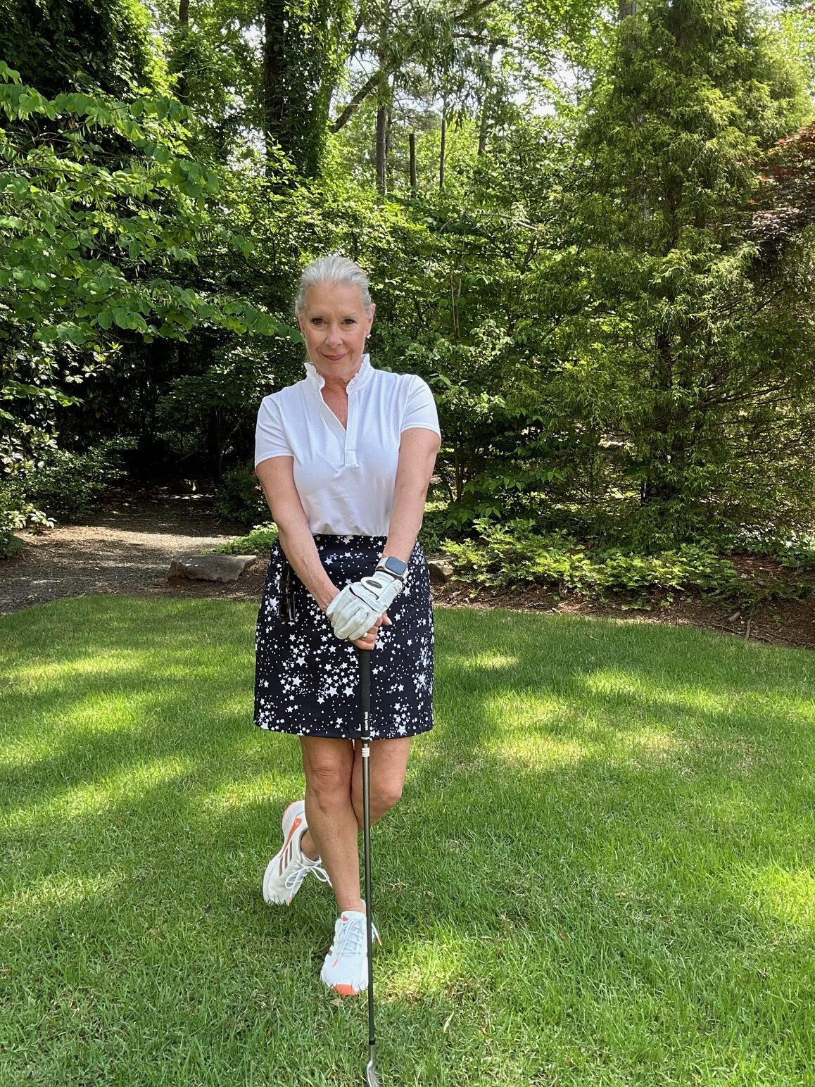 Chico’s Zenergy collection even has a Zenergy® UPF Knit Stars Skort that you can wear on and off the golf course. It is perfect for Memorial Day weekend when you are having an outdoor party. I am wearing the Zenergy® UPF Ruffle Neck Polo, which features Chico Tech knit fabric with UVA and UVB protection.