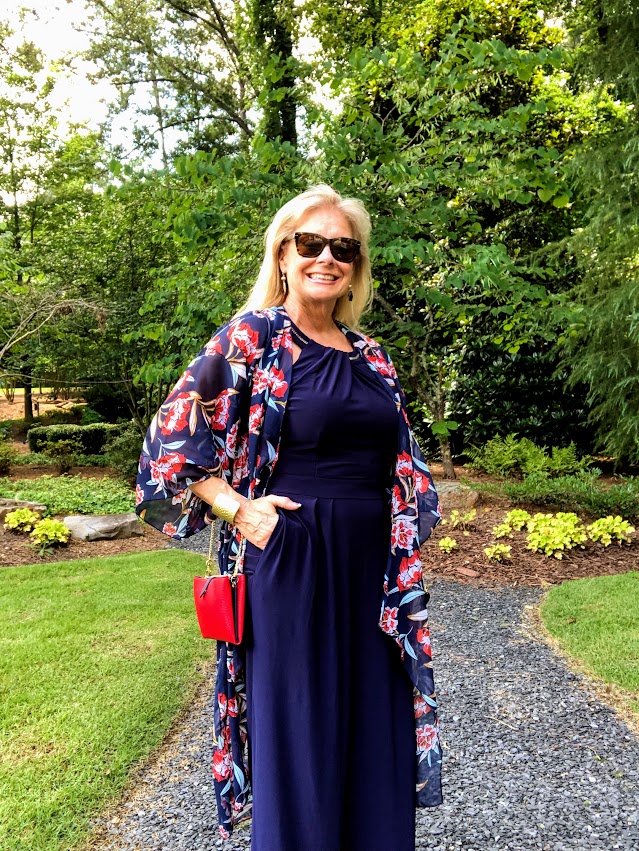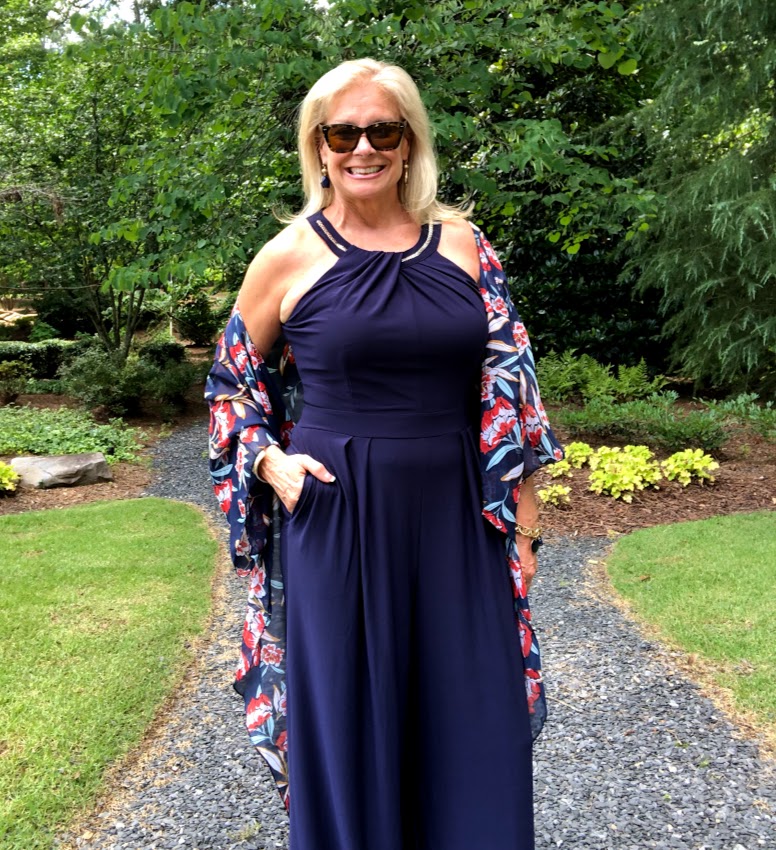Summer weddings are upon us and many will be outdoors. (Rarely do I get invited to a church wedding anymore since our young millennials prefer barns and outdoor weddings.) I have selected the perfect jumpsuit and floral duster that can be worn to a wedding or formal event no matter where it’s being held!