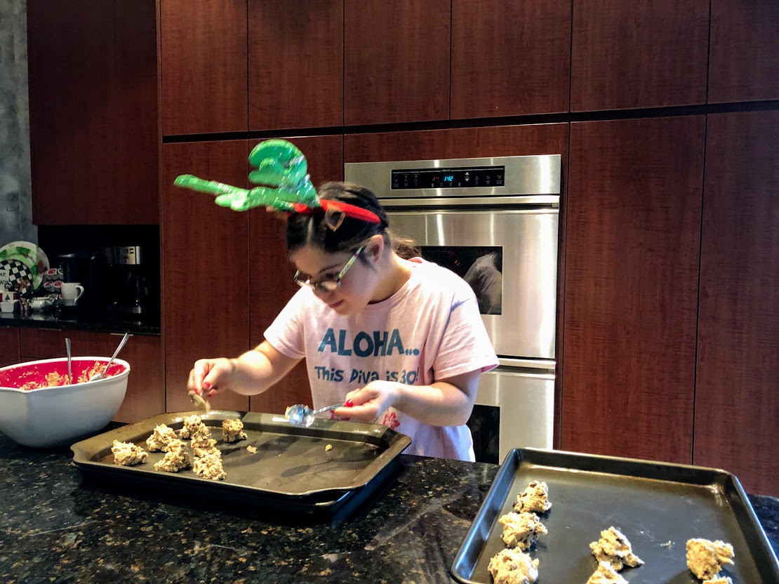 This was taken in December when we were making cookies for Santa. Do you notice her thinner face and profile?