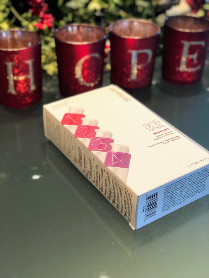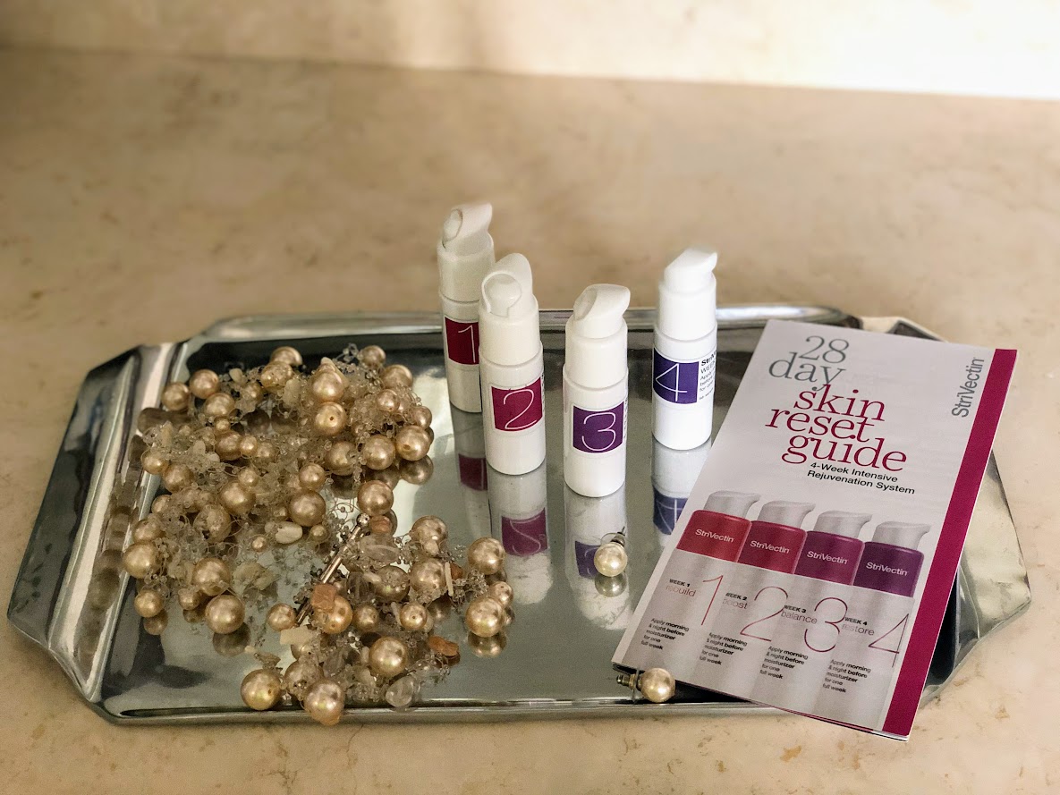 I received StriVectin’s latest product Skin Reset 4-Week Intensive Rejuvenation System that was just introduced this month. I love products that help repair my skin that has been damaged by the sun and is now very dry due to menopause and age. When the weather gets colder your skin dries out for the cold dry air and from the furnace when it’s warming the temperature in your home. You know I have mentioned in previous posts how dry my skin is due to aging (menopause) and the years of sun worshipping. As hormone levels plummet, your skin can become dry, slack, and thin. My skin has gotten so dry after menopause that I’m always looking for skincare products that will help refresh my skin.