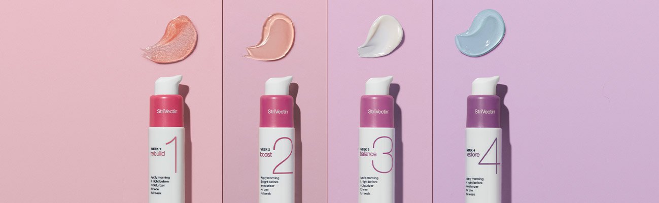 A first-of-its-kind skincare system designed to reboot, rejuvenate and get skin back on track in just 4 weeks. Four unique serums, each with their own targeted technology, address a core factor of skin aging and fatigue week after week to deliver dramatic results, without dramatic intervention. With our patented, skin strengthening NIA-114™ and performance enhancing peptides infused throughout, these four laser-focused formulas work together with sequential synergy to “reset” skin, leaving it strong, resilient and youthful-looking.