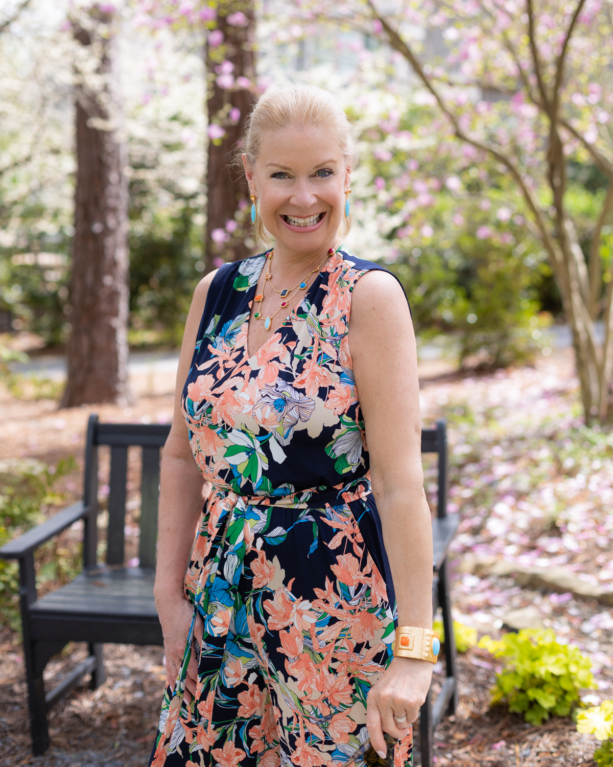Wearing the floral jumpsuit without an extra layer is perfect for warm days in April and May. It’s supposed to be in the ’80s this week in Atlanta so I can easily wear it now without an extra layer for warmth.