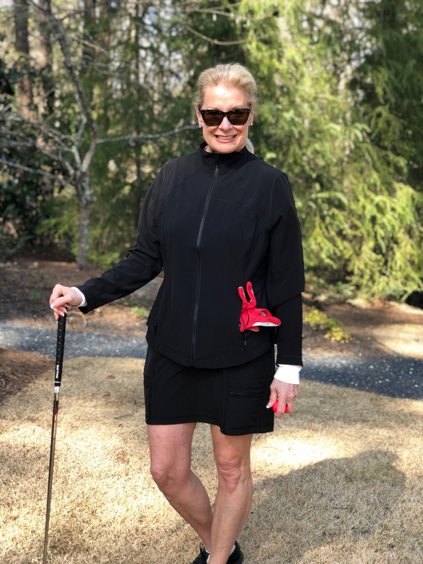This outfit is so perfect for golf! Lots of pockets and I love the longer skort! My legs are battered with varicose veins from years of flying and standing for long periods of time so I am always looking for flattering skort lengths. I will not purchase short skorts for golf!