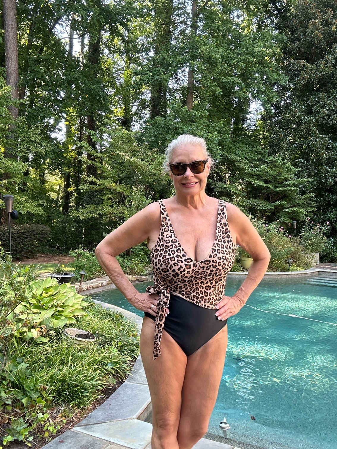 Leopard print is such a great print for swimsuits. I selected the Surf and the Perfect Wrap One-Piece in leopard print.