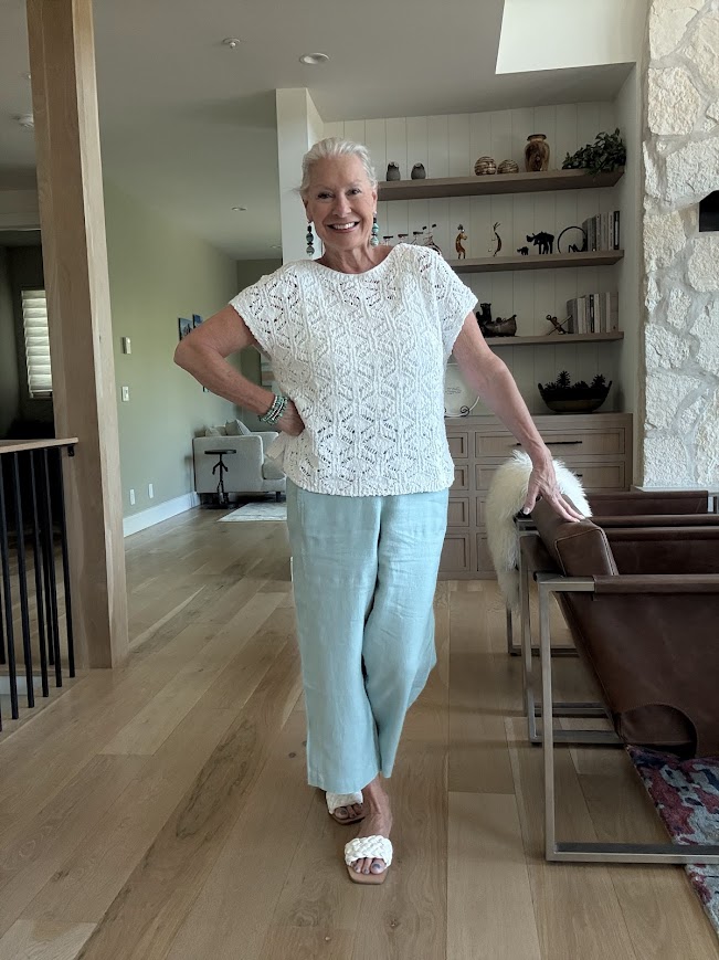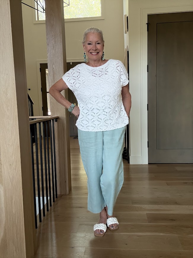I have a few linen pieces from the Pure Jill Collection from J.Jill. My favorite are the cropped linen pants. One of my favorite linen pants is J.Jill’s citron colored cropped linen pants in this post.