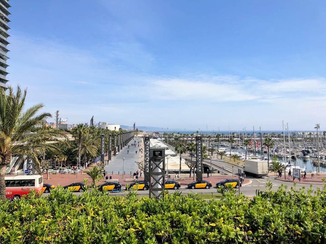 The marina area next to Hotel Arts Barcelona has a wonderful boardwalk you can walk and enjoy the restaurants lining the boardwalk. This view was taken from the upper pool area from the hotel. This is a lovely way to spend the day adjusting to the time changes and jet lag!