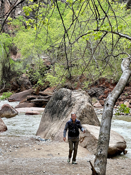 The next morning, we went on the Riverside Walk. This is one of the most delightful sections in all of Zion and is accessible to everyone. The path is paved and is mostly accessible by wheelchairs. Even if you aren’t hiking The Narrows, you can do the Riverside Walk. This is the first half of The Narrows hike — the paved portion. You won’t get wet or have to walk in the water along this stretch.