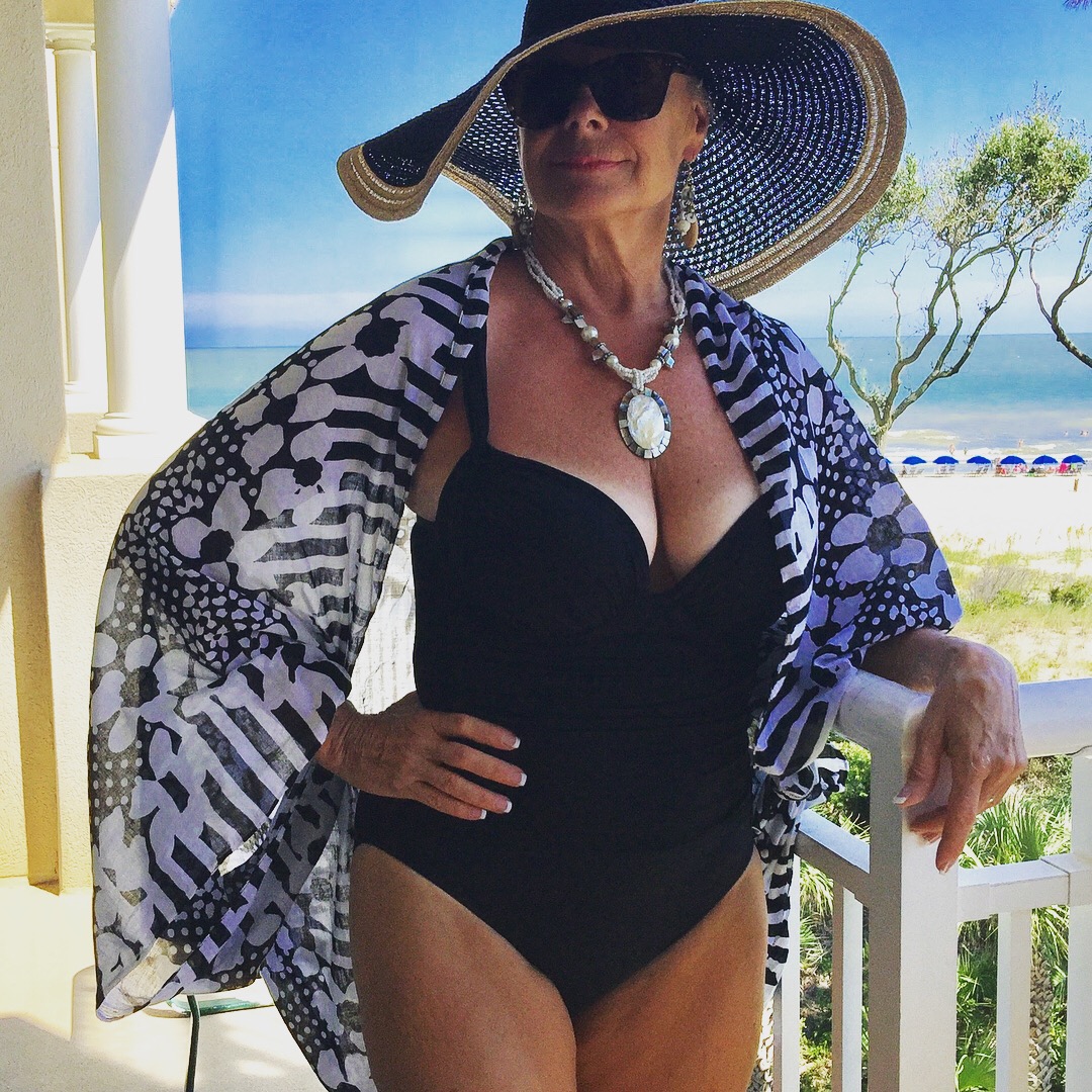 This post on Instagram actually started me writing about whether we should be wearing a bikini after 47. Some young thing had written an article that said we should hang up wearing bikinis after 47 which prompted women over 60 to post photos in swimsuits last summer and we were up for the challenge. This didn’t appear in the blog post but the swimsuit did. This was the first post to receive over 1500 likes on Instagram and yes it brought out the creepy men of Instagram too.
