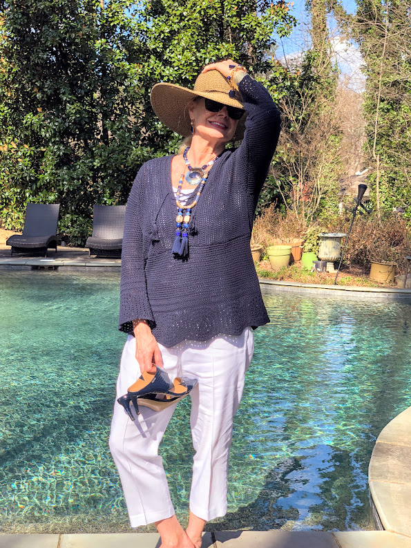 This outfit from Soft Surroundings that was featured in last Tuesday’s post is a perfect beach resort outfit because the jacket comes in handy for cooler February temperatures in Florida.