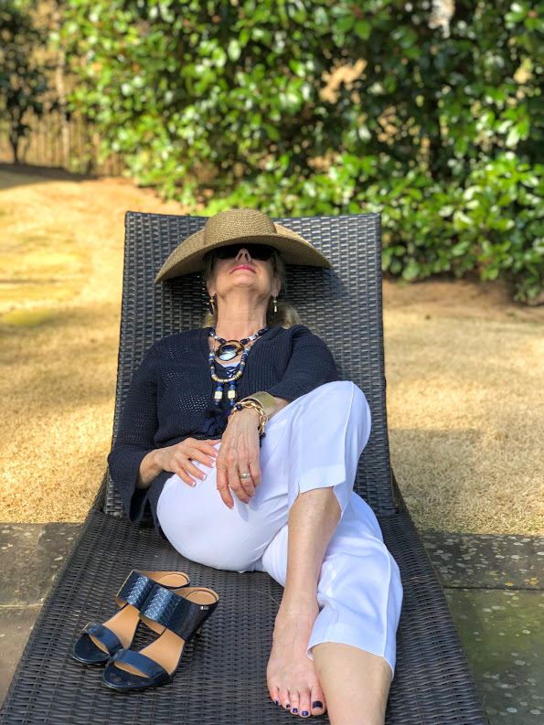 Robin, fabulous outfits, colors, and prints! What a relaxing place to visit. I could use a little relaxation and some sunshine right about now.