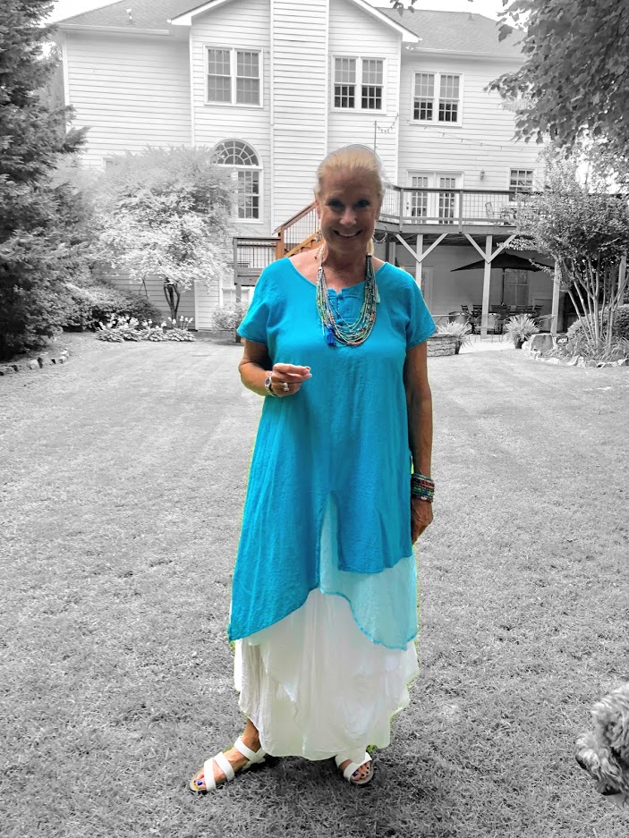 My boho chic style is on repeat as this turquoise tunic and gauze skirt are perfect for traveling. I wore this out for dinner at Jeff Ruby’s. Elegant and so flowy!